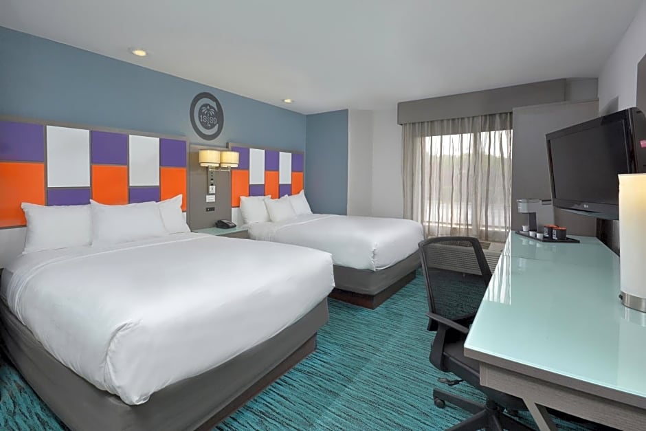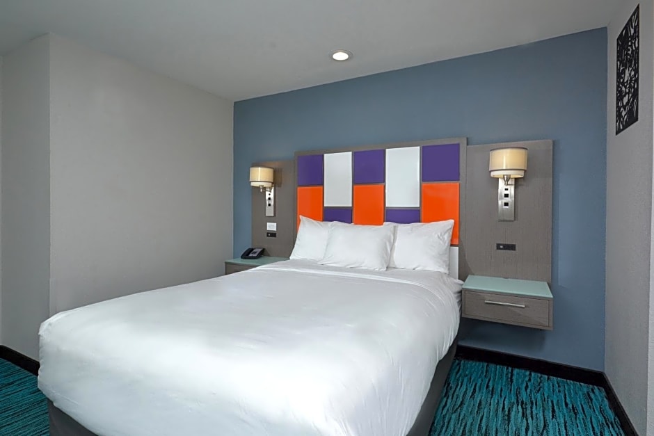 This nonsmoking room includes a 32-inch flat-screen TV, microwave, small refrigerator, and desk.